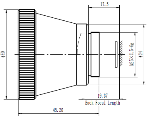 | Materials of Lens Housing | Anodized aluminium | Max. Dimensions (Diameter x Length) | Φ50x45.26 |