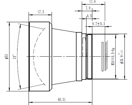 | Materials of Lens Housing | Anodized aluminium | Max. Dimensions (Diameter x Length) | Φ53x48.31 |