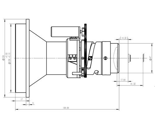 | Back Focal Length | 41.32mm(1.64mm from the protective windows) | Minimum Working Distance | 5M |