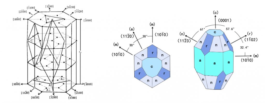 Figure 1.The Lattice Structure of Sapphire and Common Sapphire Crystal Orientations