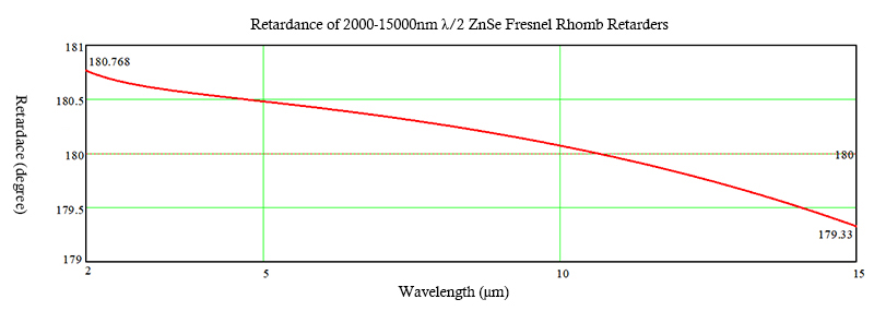 Figure 10. The curve above illustrates the superiorly broad wavelength range capability (2000-15000nm) of a Half Fresnel Rhomb Retarders of ZnSe.